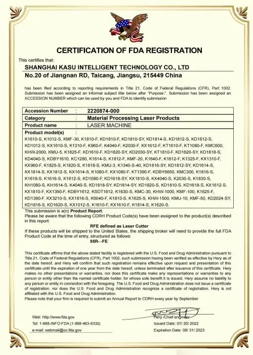 KASU Laser is a China High-Tech Enterprise. And all our laser machines have passed CE and FDA certifications and will help you meet your local government regulations.